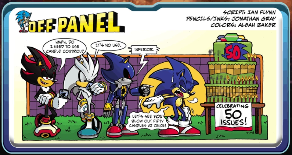 Archie Sonic Universe Ausgabe 50 ist die 50. Ausgabe von Sonic Universe und einer der Meilensteine der Sonic Archie Comics. Dabei treffen erneut Shard und Metal Sonic aufeinander und bekämpfen sich, während Metal Sonic als Sieger hervorgeht.