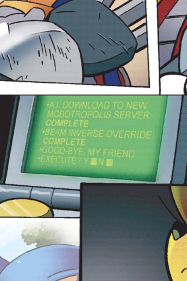 Derweil kommen Sally und Sonic in das „Herz der Basis“ und zu dem Weltenrobotisierer an, bis Eggman ihnen eine Simulation zeigt, was passieren würde, wenn er die Maschine aktiviert, denn es würden nicht nur alle Mobianer zu Robotern werden, sondern die, die schon robotisiert sind (Jules, Bunnie, NICOLE und u.a. alle Maschienen der G.U.N), würden gleichzeitig zerstört werden (Operation: Clean Sweep).