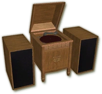 Das Audiosystem besteht aus drei Teilen. Links und rechts befinden sich zwei Lautsprecher, welche ein hölzernes Gehäuse besitzen. In der Mitte befindet sich ein Kästchen, welches einen Plattenspieler beinhaltet. Der mittlere Teil besitzt zudem eine Klappe, mit welcher der Plattenspieler verdeckt werden kann.