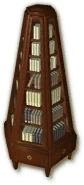 Das Bücherregal hat als Grundriss ein Sechseck, welches nach oben hin kleiner wird. In der untersten Ebene sind kleine Schubladen an allen sechs Seiten angebracht. Darüber sind kleine Fächer angebracht, in welchen Bücher abgelegt werden können. Das Bücherregal steht auf sechs kleinen Stützen, welche aus dem selben Material wie das Bücherregal selbst gefertigt sind.