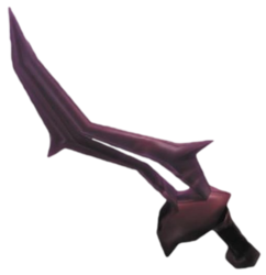 Das Schwert erinnert an eine Dornenranke. Seine Form beschreibt eine leichte Doppelkurve. Am Anfang der zweiten Kurve spaltet sich das Schwert in zwei Teile, und endet am Griff, welcher nicht wie der Rest der Waffe violett, sondern schwarz ist.