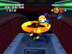 Dieser schwarze Tornado kann Feinde in die Luft wirbeln, wo man sie entweder angreifen oder auf den Boden fallen lassen kann, wo sie Schaden nehmen. Sonic hat eine ähnliche Attacke, namens Blue Tornado, die bis auf die Farbe komplett gleich funktioniert. Zusätzlich wird sie benötigt, um Pfähle erklimmen zu können.