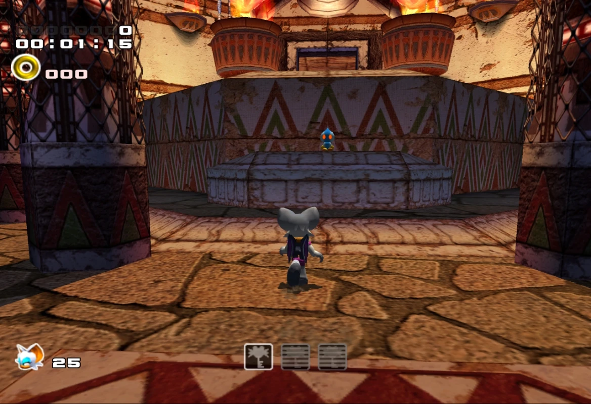 Rouge folgte Dr. Eggman bis zu seiner Basis in der Pyramide. Um sie jedoch betreten zu können, muss sie zuvor drei Schlüssel finden, die alle in der Stage versteckt sind.