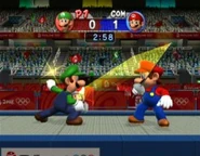 - Dies ist das einzige Spiel der Mario & Sonic-Serie, in dem der Hintergrund von Shadows Flagge grau ist. In den Nachfolgern wurde er rot gefärbt.