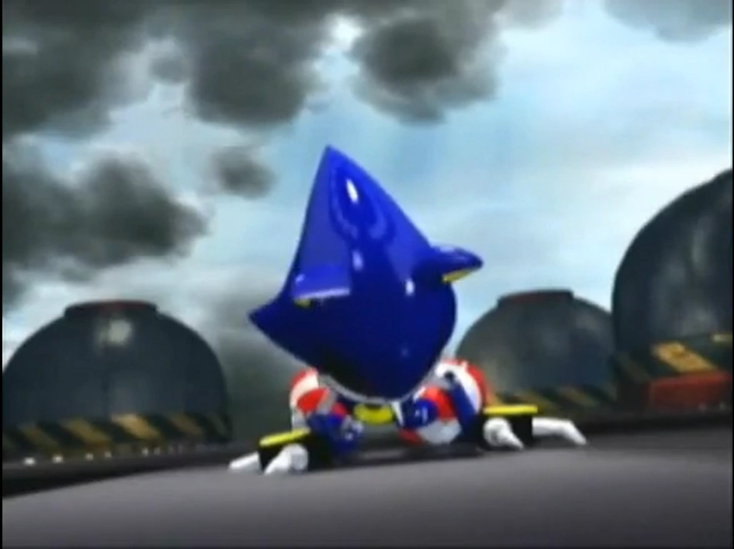 Danach brach Metal Sonic zusammen (seine roten Pupillen waren nicht mehr in seinem Augen vorhanden und er lag nur leblos da), dann wurde er von Omega und Shadow aufgehoben (wohin sie ihn brachten ist unklar).