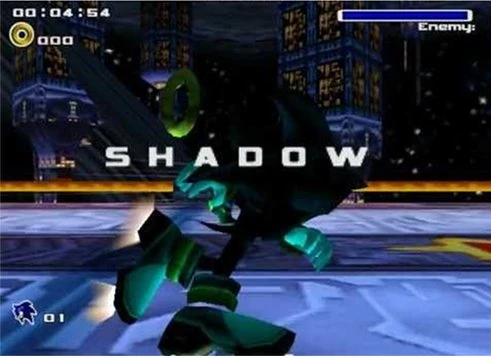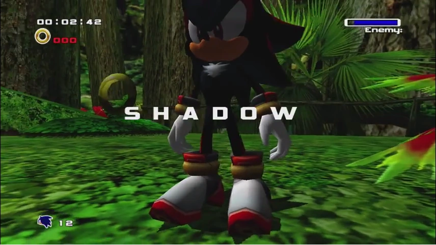 Der Kampf findet auf einer kleinen Plattform im Wald statt. Shadow attackiert den Spieler mit Sprüngen und der Homing Attack. Sonic muss ihn attackieren, wenn er am Boden steht und ihm den Rücken zugekehrt hat. Nach drei Treffern ist Shadow besiegt.