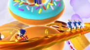 Para la versión de Wii U, La Zona Tres de Desert Ruins tiene una tematica de caramelos, similar Sweet Mountain de Sonic Colors. Sonic puede estar en multiples plataformas echas de varios alimento como regaliz, Torta y Galletas. Algunos alimentos se pueden ver en el fondo, como bizcochos, panqueques y helados.