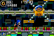 Durante la batalla, el vehículo solo se mueve en el medio de la pantalla y se apoya en un riel sin fin. El jugador es incapaz de llegar hasta la cabina, donde se encuentra Eggman. Eggman puede disparar proyectiles electrizantes desde el domo del vehículo hacia el jugador. La única forma para llegar a la cabina es saltar sobre una de las plataformas para luego saltar sobre la cabina y golpearla. El jugador a la vez debe ver cuando la luz de las plataformas anaranjadas cambie de azul a rojo, o sino será dañado por los picos.