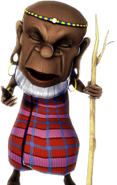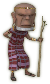 | El anciano del pueblo de Mazuri. Él tiene la costumbre de caer en cuentos de su propio heroísmo cuando esta de buen humor. Estos cuentos crecen más exagerados todos los años, hasta el punto en que ahora él había golpeado ondas enteras de elefantes caprichosos con una mano atada a la espalda. A decir verdad, sin embargo, Gwek no es tan aficionado al peligro. | |||