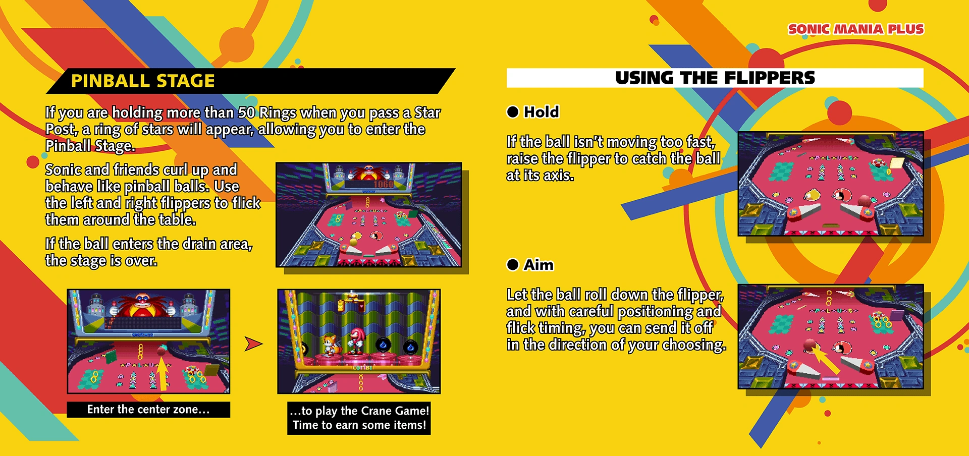 - La palabra "PLUS" ("MÁS") se puede ver en el gabinete de pinball, refiriéndose a Sonic Mania Plus.
