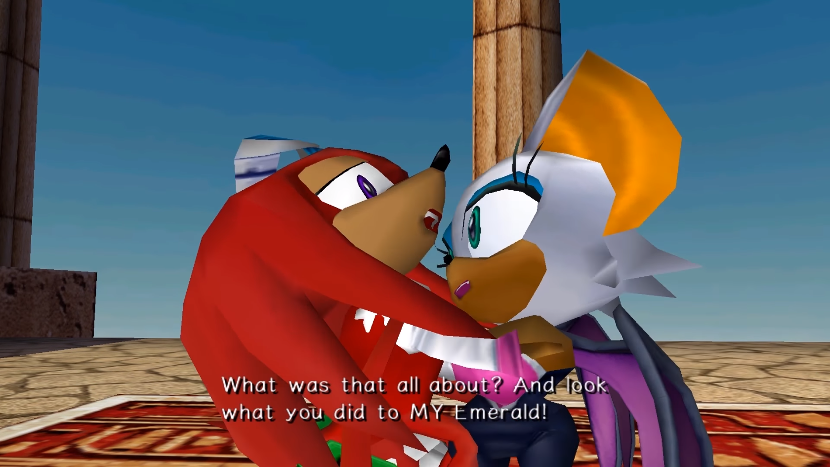 ↑Backbone Entertainment (13 november 2007). Sonic Rivals 2. PlayStation Portable. Sega. Area/level: Chaotic Inferno Zone. Tussenscène: Einde. "Knuckles: Wait! Wait you... You bat thief! Get back here!"