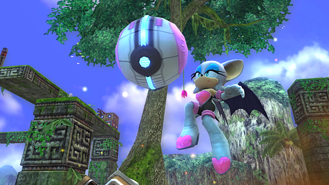Rouge bekijkt een glimmende Chaos Emerald, Sonic Channel.