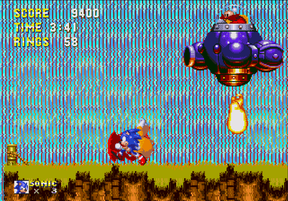 - Grając jako Knuckles, gracz nie widzi wody i wysepek w tle.