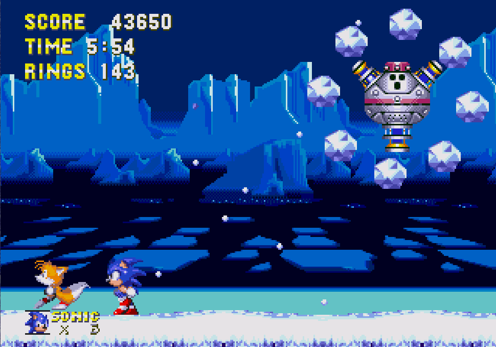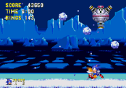 Najlepszym momentem do uderzenia bossa jest uderzanie go Atakiem obrotowym, gdy nie posiada on kul. Jako Sonic, gracz może także używać Wirującego ataku, aby uniknąć kul śnieżnych. Walka Knucklesa nie różni się niczym poza lokacją, ale niższa wysokość skoku utrudnia uderzanie robota. Aby wyrównać tę różnicę, podłoże jest nieznacznie wyniesione w porównaniu z pierwotną areną. Mini-boss zostaje pokonany po 6 uderzeniach, po których wybucha, a z nieba spada tabliczka mety.