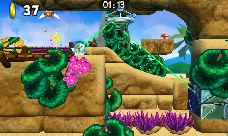 Poza niszczeniem przeciwników Blaster pozwala także niszczyć specjalne, metalowe bloki z jego ikoną. W niektórych sekcjach gracz będzie musiał dodatkowo odbić promień Blastera od soczewek, ustawiając się odpowiednio i czekając na moment do strzału.