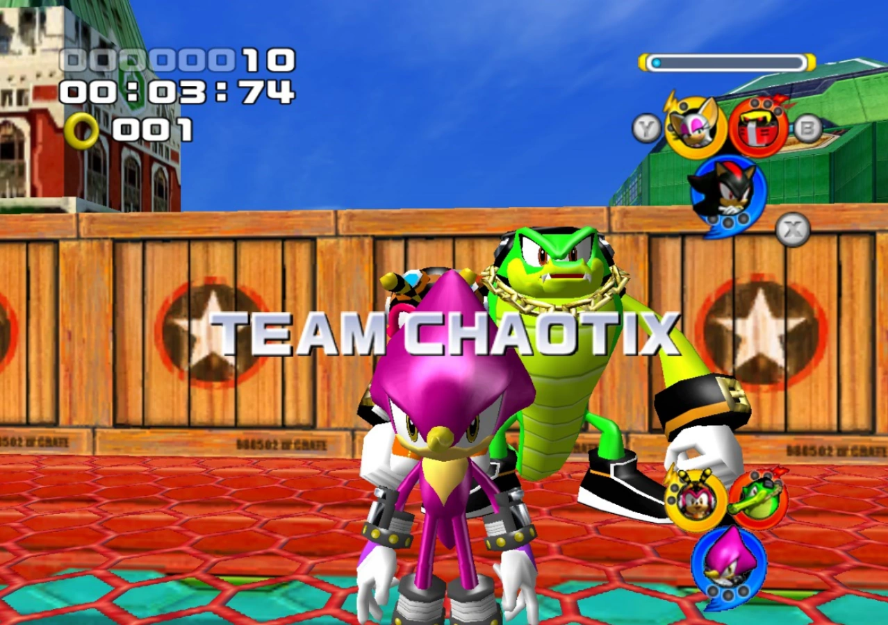 Drużyna Dark spotyka w mieście Grand Metropolis Chaotix. Rouge uważa, że będą oni próbowali ukraść skarb Eggmana, który nietoperzyca chce zdobyć. Espio z kolei uważa przeciwną drużynę za rywali swojego klienta. Nieporozumienie, jakie zachodzi między drużynami, wkrótce przeradza się w walkę.