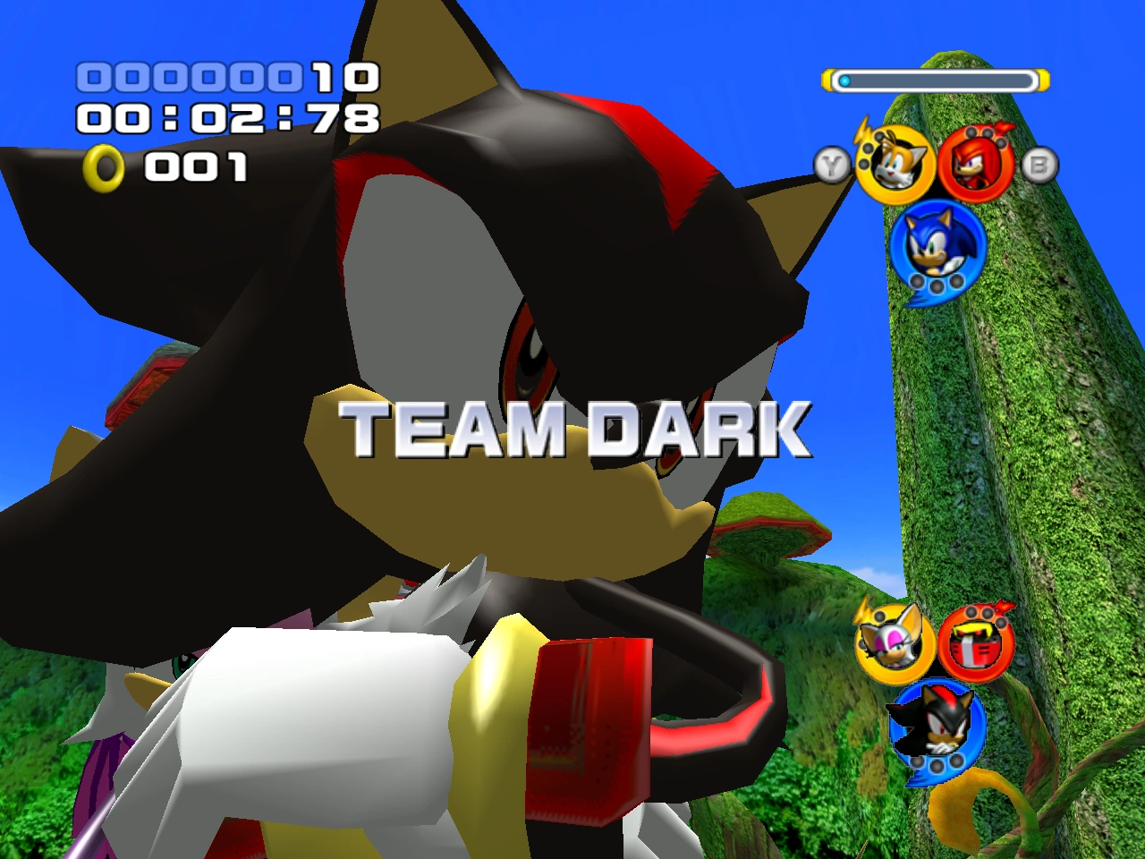 Przemierzając Lost Jungle, Drużyna Dark zauważa Sonica i jego przyjaciół. Shadow, który ma amnezję, jest ciekawy co podobny do niego jeż robi w takim miejscu. Niebieski jeż i jego przyjaciele zauważają Drużynę Dark i są zaskoczeni widokiem Shadowa, którego rzekomą śmierć widzieli w trakcie walki na ARK. Rouge zamierza powstrzymać Drużynę Sonic, aby sama mogła zająć się Eggmanem. Omega również grozi drużynie destrukcją. Shadow i Sonic wymieniają się obelgami, po czym ruszają do walki.