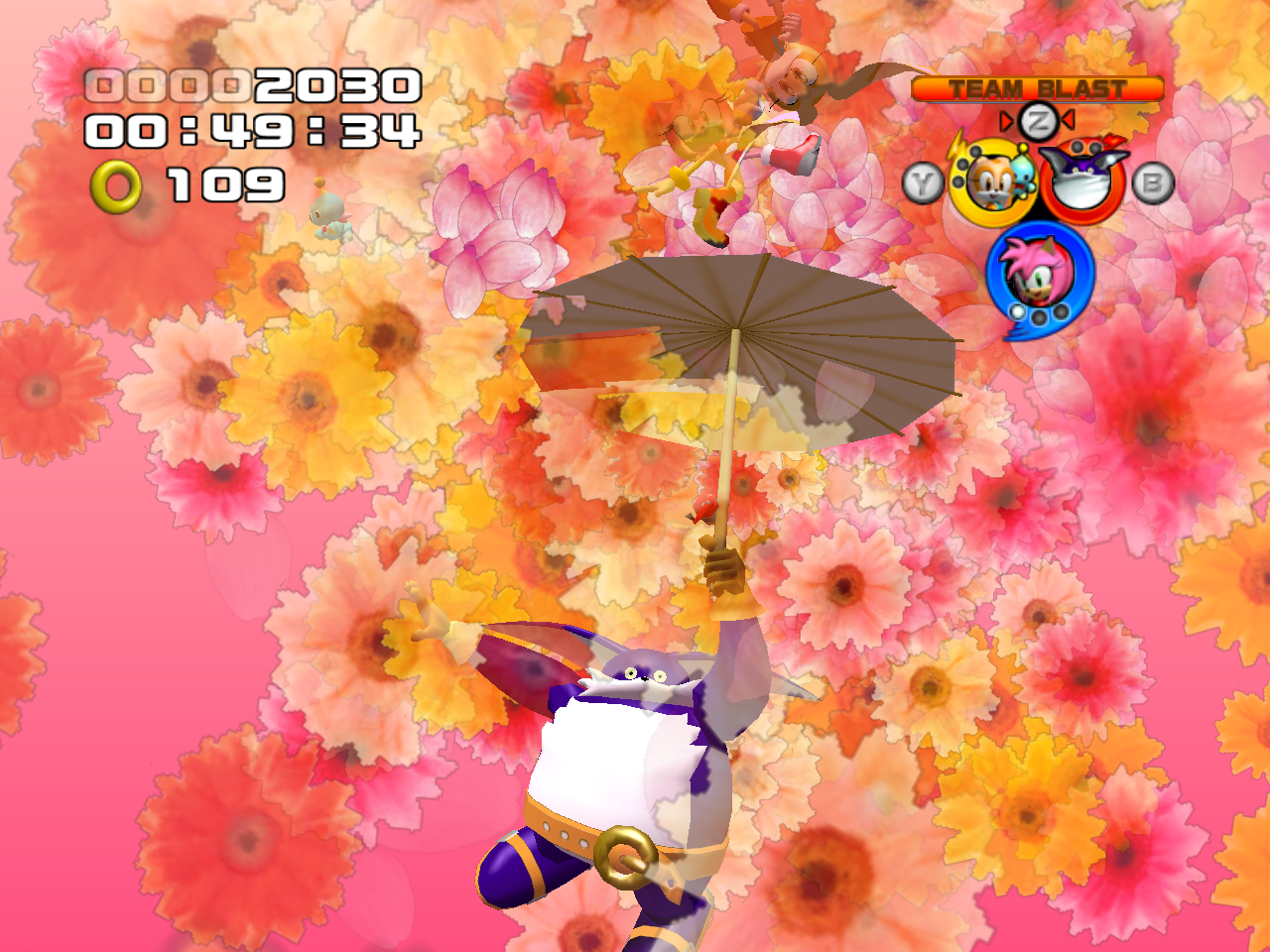 Flower Festival może być użyty przez gracza po zapełnieniu się licznika Team Blasta. Na początku ataku, Big odbija Amy i Cream po swojej parasolce, trzymanej w górę. Następnie kot podskakuje i wznosi parasolkę do góry, stając na jednej nodze. Amy i Cream stają na parasolu i łapią się za dłonie. Cheese krąży wokół drużyny, która zaczyna wydzielać dookoła siebie liczne kwiaty, które niszczą pobliskich przeciwników. Dodatkowo, po zakończeniu Team Blasta, poziom wszystkich postaci w drużynie zwiększa się o jeden, obecny lider otrzymuje jednorazową osłonę, a także nieśmiertelność na pewien okres czasu.