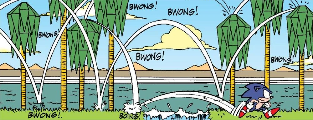 Na szczytach palm tego poziomu znajdują się ukryte sprężyny. Większość odbija gracza jedynie lekko, ale pojawiają się także silniejsze sprężyny. Można tu też zebrać liczne pierścienie oraz utrzymać się na górnych sekcjach. Sprężyny ukrywają się też w wybranych miejscach pod ziemią, albo w sekcjach z dużą ilością czerwonych kwiatów. Pojawiają się poziome sprężyny odbijające gracza do tyłu albo w kierunku stromych wzniesień, albo takie umieszczone naprzemiennie między dwiema przeciwległymi ścianami. Tutejsze wodospady zrzucają gracza na dolne sekcje.