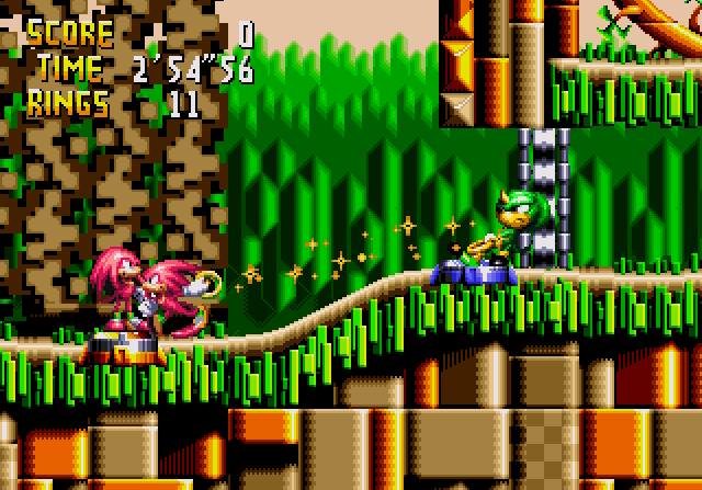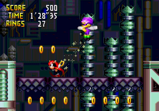 Espio przyciągający Knucklesa do wyższej platformy