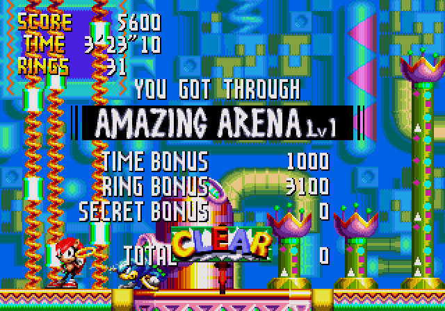 - Etap bonusowy – dodatkowy poziom, na który można wejść mając przynajmniej 20 pierścieni i znajdując wielki pierścień ukryty podczas aktu. Pozwala zdobyć dodatkowe power-upy.