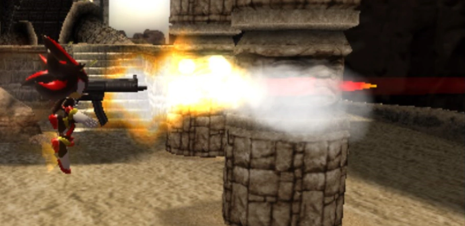 Jeśli Shadow nie ma przy sobie broni to wykona obrót z kopnięciem, zadając obrażenia przeciwnikom w niewielkim zasięgu. Jeśli ma broń to zacznie z niej strzelać będąc w powietrzu. Shadow może się unosić się i swobodnie obracać tak długo jak strzela z dowolnej broni, lub jeśli broń ma celownik laserowy i Shadow z niej celuje.
