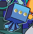 Niebieski Wisp jest Wispem o ciemnoniebieskim kolorze skóry. Ma troje żółtych oczu, a jego ciało jest w kształcie sześcianu. Ma również trzy krótkie i kanciaste odnóża.