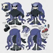 Mimic jest fioletową antropomorficzną ośmiornicą. Posiada sześć "rogopodobnych" czubków na swojej głowie oraz cztery długie macki sięgające aż po stopy. Posiada przyssawki na stopach, dłoniach oraz spodach swoich macek. Mimic ma białe oczy z czarnymi twardówkami i blado-szare, wyschnięte usta. Nosi poszarpany czarny płaszcz z rękawami aż po nadgarstki oraz czarne nogawki z tego samego materiału.