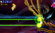 Walka toczy się w tunelu czasu, w kształcie tuby. Gracz steruje tutaj Klasycznym i Współczesny Super Soniciem. Gracz może zmieniać perspektywę w trakcie walki z bossem, goniąc go w trójwymiarze (wewnątrz tuby), lub w dwóch wymiarach (na zewnątrz tuby). Pożeracz czasu może również zmieniać swoje położenie. Na drodze pojawiają się przeszkody, w postaci unoszących się gruzów, będących fragmentami poprzednich poziomów. Mogą one spowolnić postać. Gracz może niszczyć je za pomocą Super Sonic Spinning, lub Super Sonic Missile.