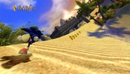 Sand Oasis to pustynna kraina pełna oaz. Znajdują się tu również zabudowania miasta, którym włada Król Shahryar. Na poziomie pojawiają się liczne wazony, które można zniszczyć wbiegając w nie. Zawierają czasami przydatne przedmioty, takie jak pierścienie. Główna misja rozpoczyna się w jednym z budynków. Sonic na początku skręca w prawo i biegnie po schodach w górę. Następnie wychodzi na zewnątrz i zbiega w dół stromego tarasu do oazy, w której wykonuje kilka zakrętów między wydmami. Następują potem dwa długie zakręty w prawo i w lewo, po czym na gracza czeka jeszcze ostatni zakręt, w trakcie którego z trasy wynurzają się filary jako przeszkody. Pod koniec część filarów zapada się. Gracz musi następnie przeskoczyć nad kilkoma platformami i znajdzie się na otwartej przestrzeni, gdzie znajdują się liczne szyny i zawalające się filary. Sonic biegnie następnie przez bramę do mniejszej oazy i wykonuje w niej kilka krótkich zakrętów, po czym zakręca i wyskakuje z rampy na unoszące się nad wodą ruiny, składające się z kilku prostych mostów. Po serii ramp i sprężyn gracz wraca z powrotem do miasta, biegnąc przez skręcającą na początku w lewo uliczkę. Należy uważać, gdyż od tej sekcji przed graczem będą lądowały ogromne włócznie, wbijające się w ziemię i stanowiące przeszkody. Sonic przebiega następnie po ścianie i zakręca, następnie przemykając między włóczniami wbiega do korytarza, w którym znajdują się liczne miotacze ognia, które należy omijać. Po pokonaniu korytarza gracz wybiega na zewnątrz i wspina się na wydmę, a następnie musi przebiec wzdłuż wybrzeża, które jest bombardowane przez włócznie i zawalające się filary. Można tutaj skorzystać z szyn na wodzie. Gracz biegnie następnie prosto w kierunku kolejnego budynku. Może tutaj wykorzystać Flying Pot aby dostać się na platformę pośrodku, albo użyć szyn po bokach. Postać wbiega następnie po ścianie budynku i gracz musi przemierzyć sekcję przechodząc wzdłuż krawędzi budynku, uważając na wysuwane kolce i miotane włócznie. Pod koniec sekcji fragment ściany budynku odpada i gracz ląduje z powrotem na dole. Przebiega następnie między filarami i zakręca w prawo, biegnąc po kolejnym moście roztoczonym nad wodą, tym razem pozbawionym przepaści. Na końcu znajdują się trzy szyny i trasa wbiega do miasta. Gracz może obrać dwa mosty po bokach, albo pojechać szyną pośrodku. Po przebiciu się przez przeciwników na ulicach miasta Sonic biegnie mostem do pałacu, a poziom się kończy.