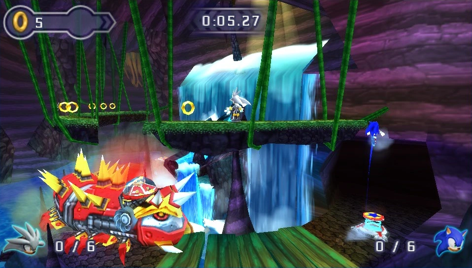 Niebieskim jeż i najszybsza żyjąca istota. Sonic i jego najlepszy przyjaciel, Tails, badali sprawę zaginięcia Chao. Od samego początku podejrzewali, że stoi za tym Doktor Eggman. Bohaterowie nie rozpoznają jednak, że za ich arcy-wroga podszywa się Eggman Nega. Specjalna umiejętność Sonica to Sonic Boom. |