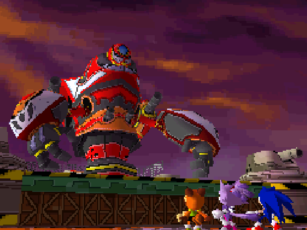 Sonic i Tails nie mogli jednak wrócić do swojego świata, ponieważ nie znali na to sposobu. Niespodziewanie dotarły do nich wieści, że Jeweled Scepter został znowu skradziony. Chwilę potem Southern Island nawiedziło najsilniejsze jak dotąd trzęsienie ziemi. Pojawili się Doktor Eggman, Doktor Eggman Nega i Egg Wizard. Okazało się, że naukowcy stali za pojawieniem się piratów i to oni chcieli zdobyć Jeweled Scepter. Wyjaśnili bohaterom, że berło dysponuje zdolnością pozwalającą okiełznać Energię Gwiazd. Eggman i Eggman Nega ogłosili że ta energia pozwala istnieć obu wymiarom i jest na tyle potężna, aby mogła zniszczyć światy Sonica i Blaze. Naukowcy udali się do jądra planety Blaze, w którym znajdowało się źródło energii. Aby ich ścigać bohaterowie wykorzystali zbudowany przez Tailsa pojazd Magma Hurricane. Kiedy biegli w stronę Egg Wizarda, Sonic i Blaze zostali oddzieleni od Tailsa i Marine. Aby pokonać naukowców wykorzystali moc Szmaragdów Chaosu i Szmaragdów Sol. Super Sonic i Burning Blaze ruszyli do walki z Egg Wizardem i udało im się wygrać. Robot nie został jednak zniszczony, a Eggman Nega postanowił wykorzystać ostateczną broń do zniszczenia obu światów, wywołując panikę u Eggmana. Na szczęście Marine przerwała wykonywanie ataku, uderzając robota magicznym pociskiem. Burning Blaze osłabiła Egg Wizarda, a Super Sonic zadał mu ostateczny cios.