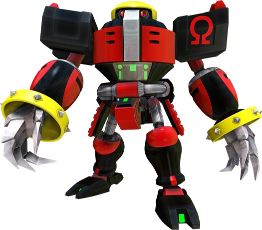 Ostatni robot z serii E-100, którego stworzył Doktor Eggman, a następnie porzucił aby zająć się produkcją na masową skalę nowej serii Egg Pawnów. Po uwolnieniu uśpionego Shadowa z kapsuły, Omega dołączył do Drużyny Dark, a później do GUN. Teraz jego głównym celem jest zniszczenie swojego stwórcy. Jednak jak sam się przekona, on sam może być zagrożeniem dla swojego przyjaciela. E-123 Omega pojawia się jako grywalna postać w historii Shadowa na poziomach: Wave Ocean, Dusty Desert, End of the World. |