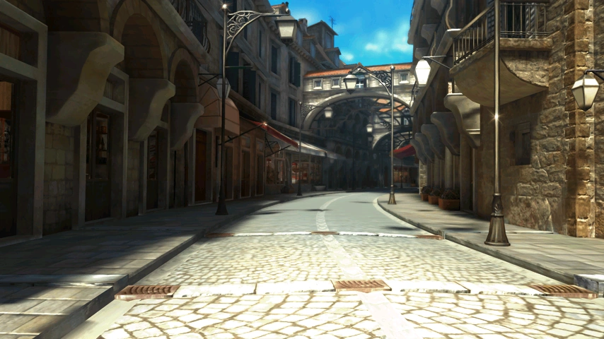 Na poziomie wejściowym w Spagonii znajduje się więcej szyny i elementów rozgrywki. Pośrodku znajduje się wielka wieża zegarowa, przypominająca Big Ben w Londynie. Sonic może skakać po jej ścianach, aby dostać się na szyny otaczające plac. Ścian po których można skakać jest tutaj jednak znacznie więcej. Niektóre obszary zablokowane są przez laserowe blokady, które utrudniają dostęp np. do obszaru otoczonego murem, z wieżą w środku. Nocą można zjechać windą do miejskich kanałów, po tym jak usunie się laserową blokadę przesuwając dźwignię. Kanały mogą okazać się niebezpieczne, ze względu na to że Sonic może wpaść do wody. W nocy Sonic może przeskoczyć nad wodą wykorzystując uchwyty na ścianie, albo ruchome platformy. Za dnia można przebiec nad wodą wykonując Pęd.