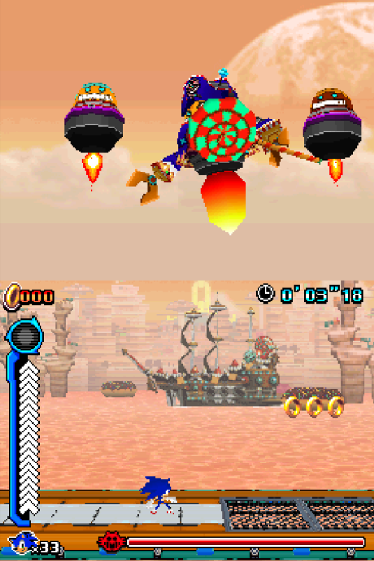 W wersji Nintendo DS bossem jest ten sam robot co w wersji na Wii. Jedyną znaczącą różnicą jest przebieg walki. Odbywa się ona w liniowej sekcji pseudo-3D. W czasie walki boss lata nad Sonicem mając do pomocy swoich wiernych robotów sługusów.