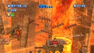 W tej misji Sonic musi dostać się do mety na czas. Zadanie to jest jednak utrudnione przez ukształtowanie terenu, przeszkody i przeciwników. Gracz będzie musiał przywoływać Vectora wciskając przycisk trójkąt/Y. Krokodyl złapie wtedy zwiniętego w kulkę Sonica i będzie mógł nim rzucić. Kiedy Vector będzie ustawiony pod odpowiednik kątem należy ponownie wcisnąć przycisk trójkąt/Y. Vector rzuci Sonica z dużą siłą i pozwoli mu ominąć niektóre przeszkody. Na zasięg rzutu wpływa również wiatr, który wytwarza ogniste tornado. Jeśli Vector jest ustawiony w nieodpowiedniej pozycji to gracz może anulować jego przywołanie wciskając kółko/B. Aby zdobyć rangę S należy ukończyć misję w mniej niż minutę i 40 sekund.