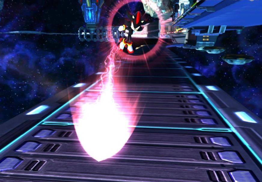 Kiedy Shadow korzysta ze swojego specjalnego ataku, wystrzeliwuje mnóstwo Włóczni Chaosu, które natychmiastowo wbijają się w podłoże. Gracz musi biec przed siebie i omijać zostawione na drodze włócznie, aby nie otrzymać obrażeń. Na końcu Shadow wystrzeliwuje w gracza potężniejszą Włócznię Chaosu, wzmocnioną przez moc Energy Core.