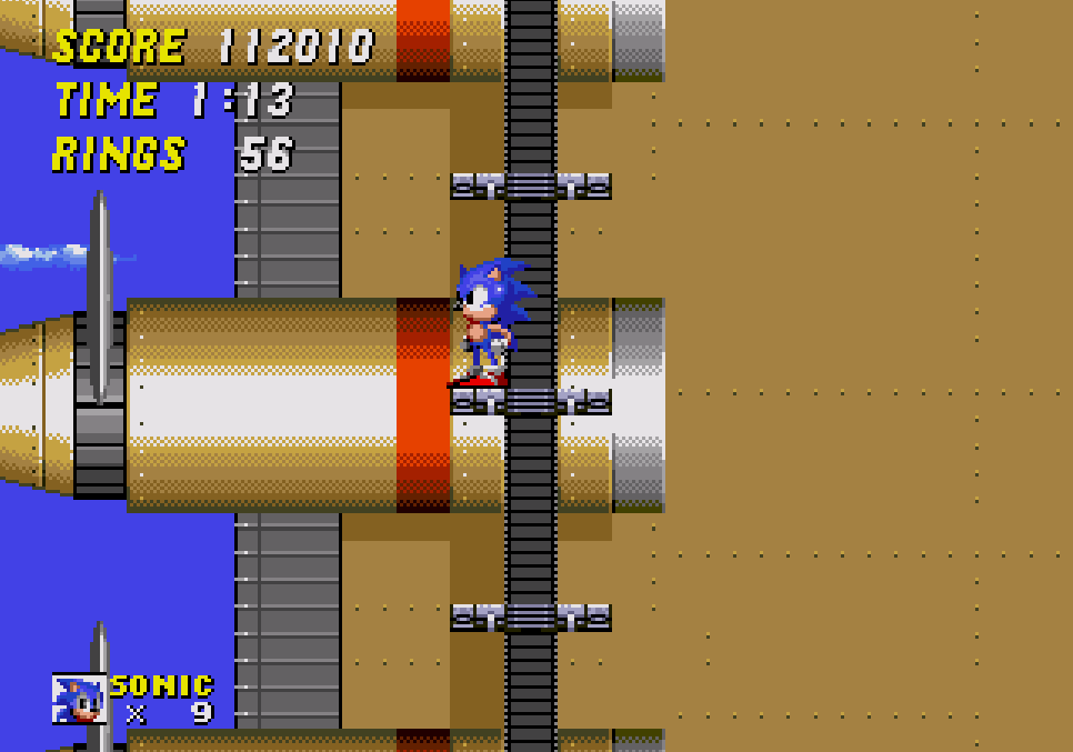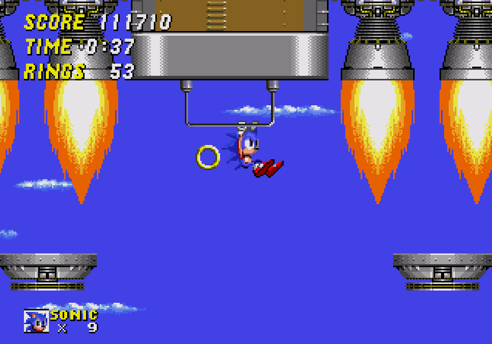 W sekcji z rusztowaniami na szczycie fortecy, po lewej stronie znajduje się przejście na skrzydło fortecy. Gracz zostaje tam porwany przez silny wiatr i chwyta się wystających z pokładu szarych płytek. Należy się następnie odpowiednio ustawić aby złapać się kolejnych płyt, aż gracz będzie mógł bezpiecznie wylądować. Zrywają się one po pewnym czasie, lub po puszczeniu się ich. Gracz ląduje następnie na ruchomych platformach przymocowanych do turbin fortecy. Stąd gracz musi ostrożnie zejść do platform, które co jakiś czas chowają się. W kolejnej sekcji pojawia się także pojedyncza taśma produkcyjna ustawiona pochyło w górę. Gracz musi tutaj przejść przez kolejne rusztowania, aż wreszcie będzie mógł wskoczyć na mostek kapitański.