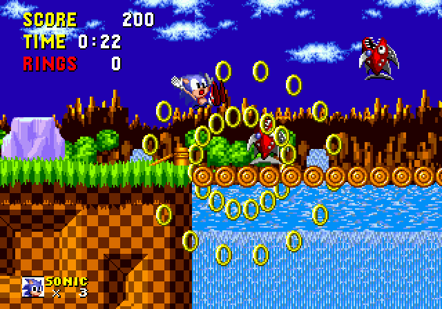 Соник теряет кольца, из игры «Sonic the Hedgehog» (16-бит).