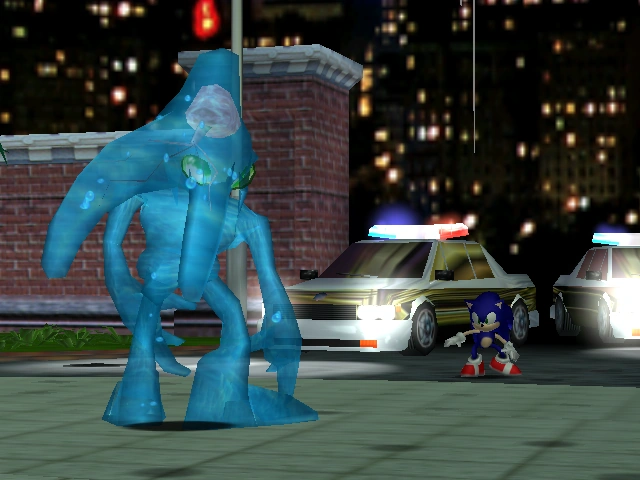 Столкновение Соника и Хаоса после того, как полиция Стейшн Сквер отступила.