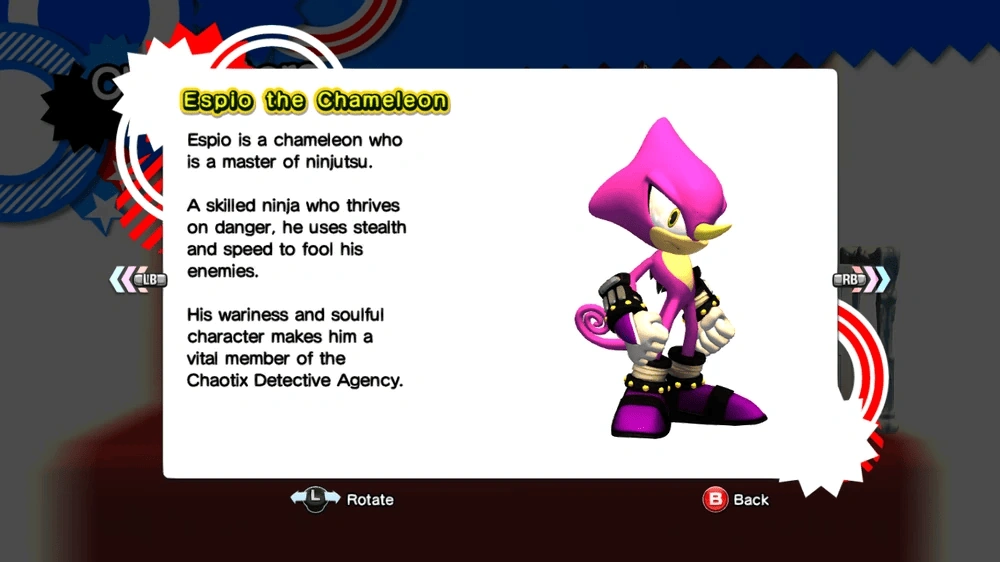 Еспіо використовує свій трюк з камуфляжем, із Sonic Generations.
