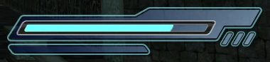 The Action Gauge consists of an oblong rhombus with a gauge inside it, which can be filled with a cyan-glowing bar representing the available power. Located in the right proportion of the Action Gauge is a 3-light display called the Level Indicator.[1]