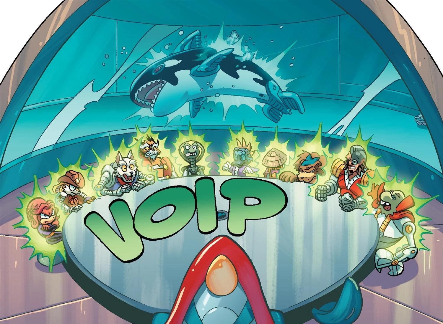 Akhlut and the rest of the Grandmasters warped to the Death Egg, from Sonic Universe #37.