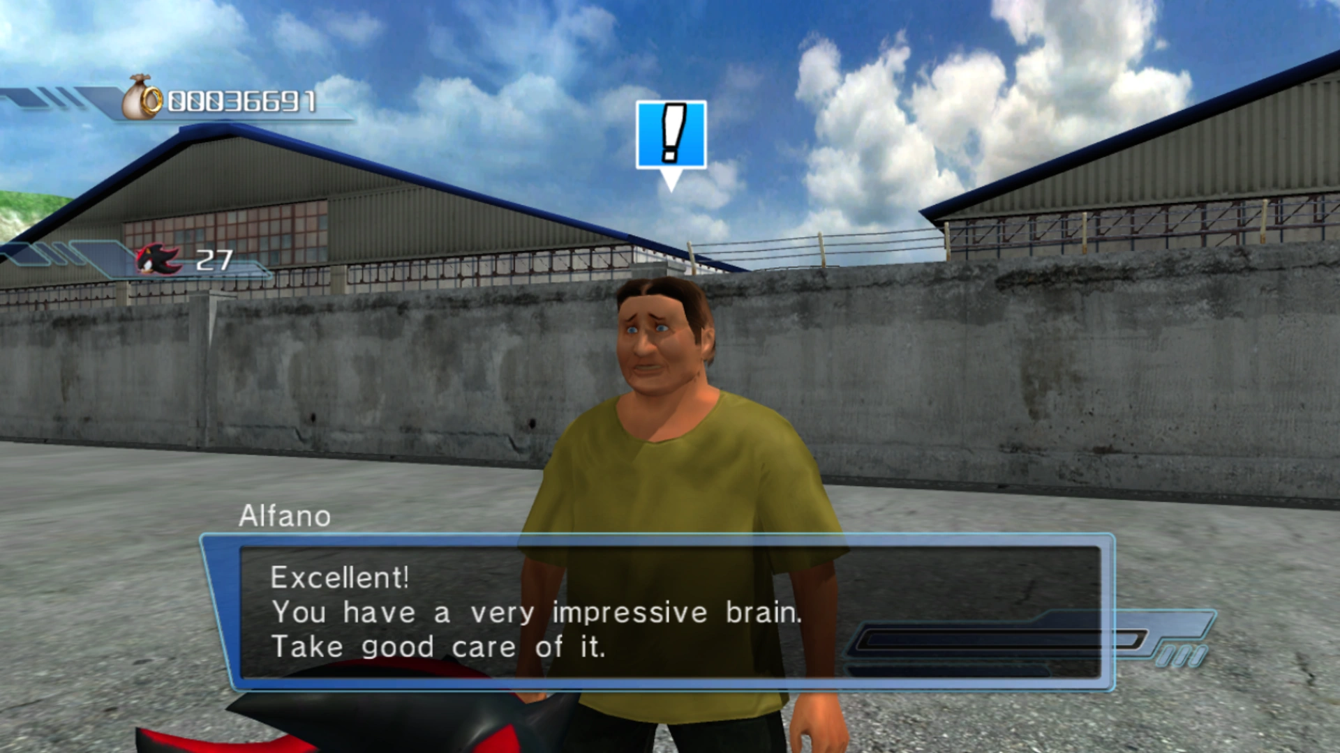Alfano is a resident of Soleanna in Sonic the Hedgehog (2006) . He is a high-level mathematician who lives in Soleanna New City . Being a mathematician, he is a very intelligent man who claims to have an IQ exceeding that of Albert Einstein . He always prefers brain over brawn, believing that having a good intellect is highly important.