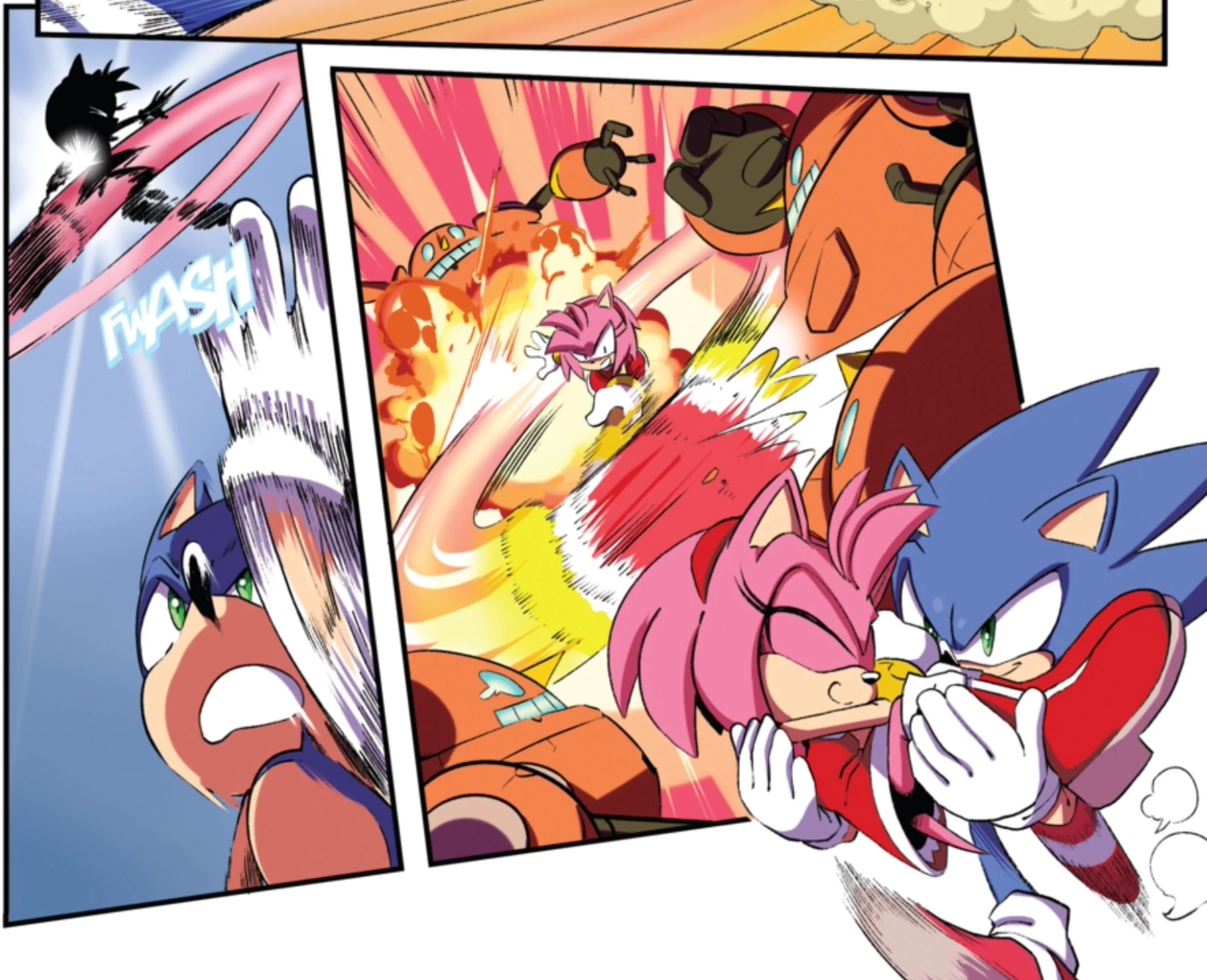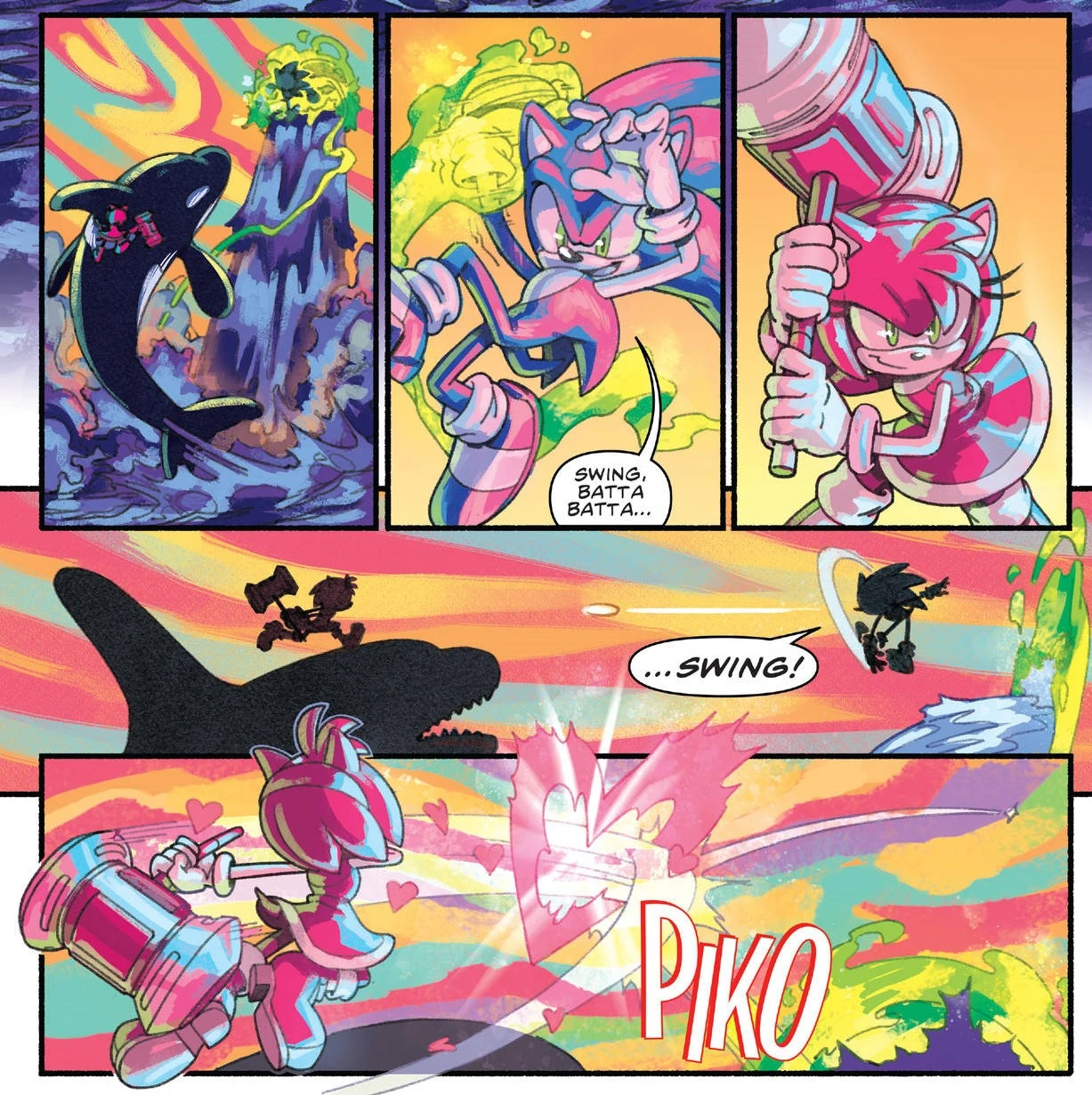 Amy defeating Badniks, from Sonic the Hedgehog #2.