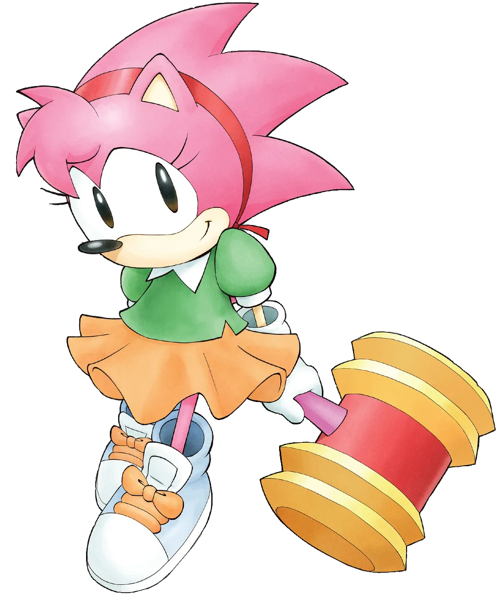 Amy later brought Omega's parts to Tails' workshop, so Tails could repair Omega. However, Tails needed both the ciphers for Omega's blueprints and spare parts. She subsequently heard from Sonic that they could get the ciphers from one of Dr. Eggman's old bases nearby. Amy initially wanted to with Sonic, but declined once she learned that the mission would be full of dangers. Instead, she decided to go with Rouge to White Park Zone and get the spare parts from Clutch the Opossum, the local Chao Racing champion. Needing a Chao to go undercover with though, Amy called Vanilla and managed to persuade her to let Cream and Cheese go with her to White Park Zone. To get to White Park Zone, Amy drove her group there in her Pink Cabriolet, but had to veer off the road when Shadow got in their way. Amy tried to convince him to join her group and help rebuild Omega, but Shadow refused and left. Arriving at the White Park Grand Chateau, Amy decided to get some spots for her friends for the White Park Chao Racing Circuit's qualification round. There, they watched Cheese compete in the Chao race. After Cheese passed the qualification round, Clutch approached Amy and Rouge, who left them his business card and invited them over. Though Amy felt it was too easy to get Clutch's attention, Amy nonetheless let Rouge handle the meeting with Clutch while she booked a room for her group.[32] The next day, Amy met Cream, Gemerl and Cheese for breakfast. There, Cream expressed her concerns for Rouge who did not come back last night, but Amy did not care too much, thinking Rouge was just busy robbing guests. Immediately after, Rouge appeared, scaring Amy. She said it was better to make sure the guests were worth stealing from first, which Amy thought was a bad example for Cream. The team then went to the next Chao Race where they could qualify for the semi-finals. After Cheese won the race, Rouge wanted to take them with her. Amy, however, wanted to know the reason for this and forced Rouge to reveal that she wanted to trick Clutch by trading Cheese for the parts they need and then turn the tables against him. Though Amy agreed on the plan, her condition was that they came with her. When the group showed up in Clutch's suite, Rouge pretended to trade with him. After a while though, Shadow appeared, knocking out Clutch and showing the others the cage in which he was holding the Chao that did not win races for him. Amy decided to keep an eye on Clutch, and thus let Rouge go so she could call Tails and ask him to come in to pick out the correct parts for Omega.[33]