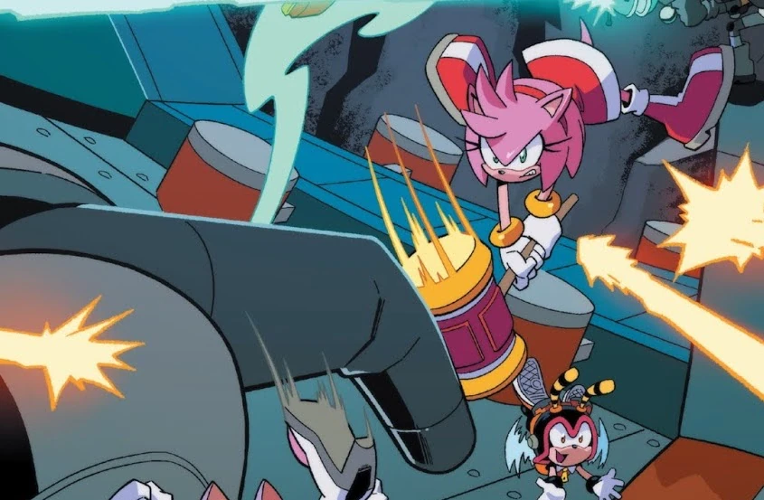 Amy destroying a turret, from Sonic the Hedgehog #9.