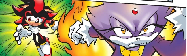 Using his rocket-skates, Shadow catches up to the fire-propelled Blaze and tells her he wants to apologize; she continues to glare ahead. He begins to explain that he knows her world needs the Sol Emeralds; when she curtly tells him that the "oceans will boil, the islands will sink and the sky will fall," he admits he wasn't aware of the details. Nonetheless, he says that his mission and world will have to come first, and that he will fight her without regret if needed. Blaze snaps at him, asking why then he's trying so hard to apologize. She races off, and a doubtful Shadow falls behind.
