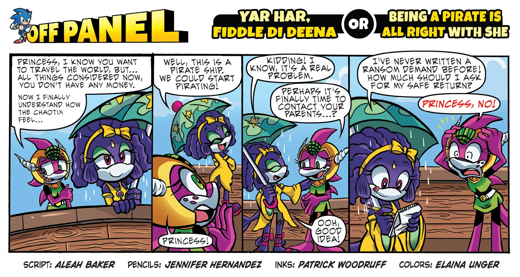 - The PIRATE PLUNDERING reaches its peak in “Case of the Pirate Princess” Finale: The Chaotix Detective Agency’s deep cover in the pirates’ ranks may be too deep to escape! In the heart of a long-lost temple, Cpt. Shellbreaker stands poised to find an ancient power. Can the Chaotix finally rescue Princess Undina? Can they rescue themselves? Or will the Chaotix turning pirates be their saving grace? It all comes to a head in this frantic finale! Featuring cover art and an “Excitement Under the Sea” variant by Mr. Sonic comics, Tracy Yardley!