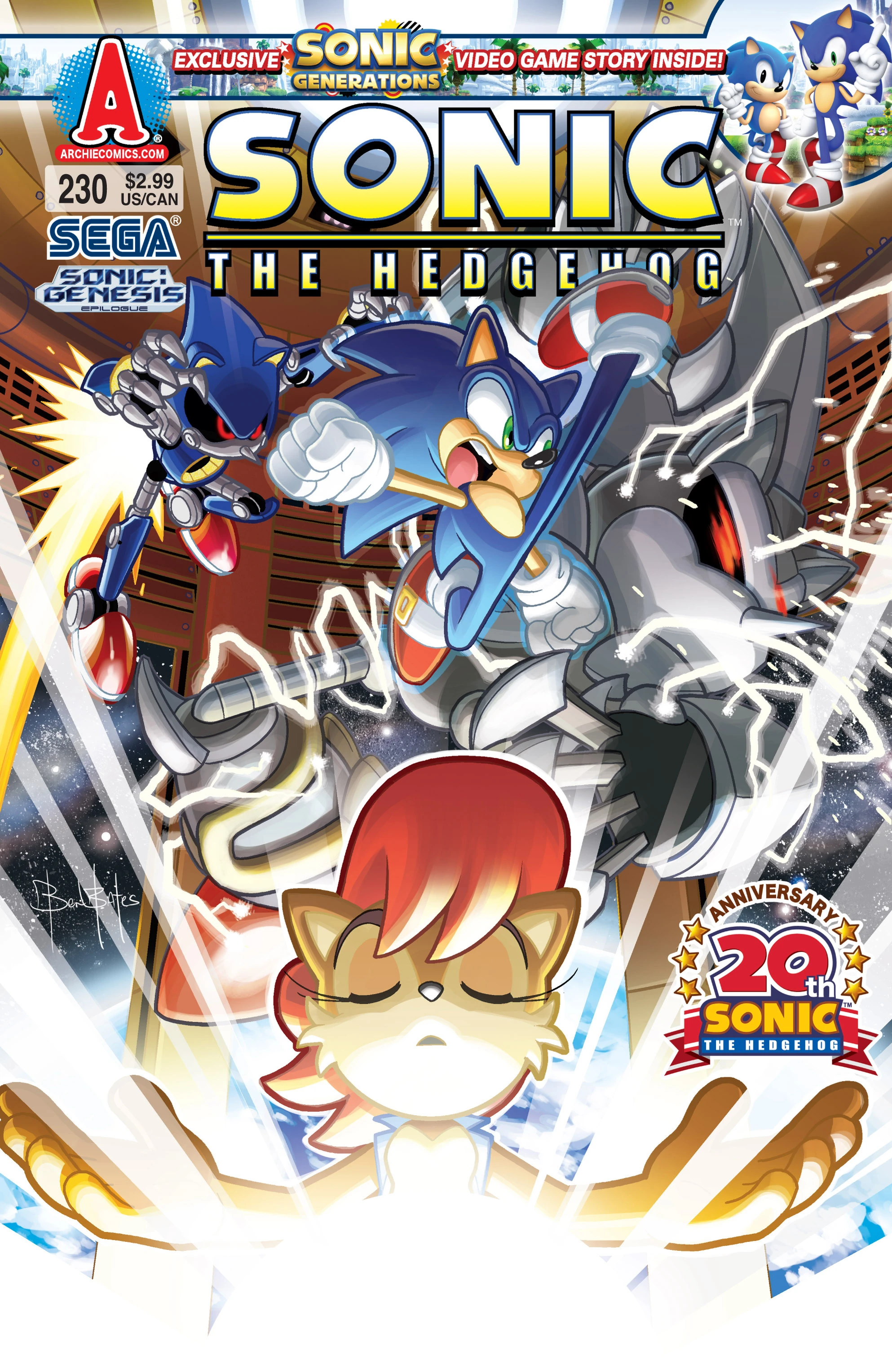 - "...Two Steps Back" & "SONIC GENERATIONS": "Genesis" may be over, but Sonic's 20th Anniversary celebration parties on! As the Genesis Epilogue unfolds, the Death Egg II still menaces New Mobotropolis, and Dr. Eggman has one more sinister trick up his sleeve. It's a desperate race against time as Sonic and Sally try to prevent another world catastrophe, and the ending will leave you speechless. Also featuring a very special SONIC GENERATIONS video game story!